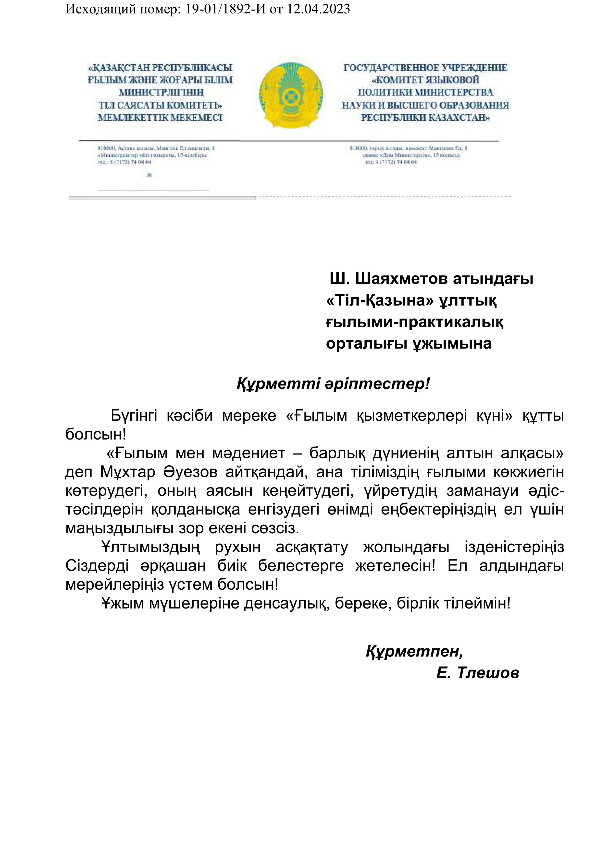 ТІЛ САЯСАТЫ КОМИТЕТІ ТӨРАҒАСЫНЫҢ ҚҰТТЫҚТАУЫ